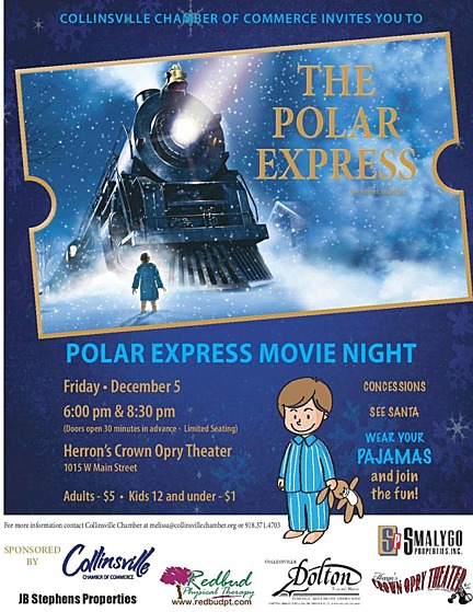 5:30pm CHS Girls Basketball - at Bixby Tourn. -vs- Owasso (w/ Owasso, Bixby, Edison, Glendale, Del City, Stillwater) 6:30pm CHS Boys Basketball - at Coweta Tourn. (-vs- Central) tba JrHi Wrestling at Sand Springs Tournament 7pm Polar Express Movie Night at the Crown (Hosted by Chamber $1 kids & $5 adults) 7pm 4A HS Football State Finals -- Oologah -vs- Wagoner at Broken Arrow |