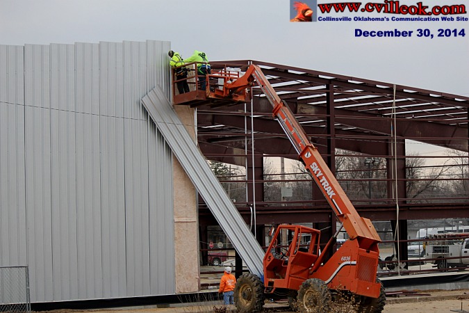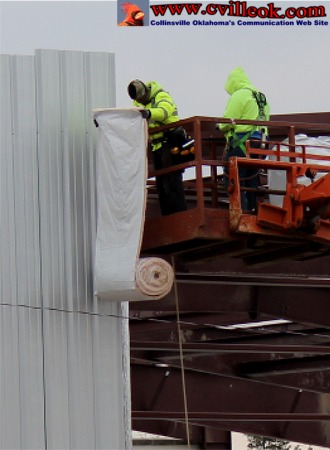 siding is going up this week on the west end of the new Baptist Church