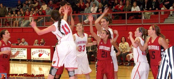 | It doesn't show up well in the box score ... but with the score after 3 quarters at 27-25 the Claremore Ladies started the 4th quarter with a 9 point run and had the Lady Cards down 27-34 with about 5 minutes left in the game. After that point the Collinsville Ladies scored all 12 of their 4th quarter points for the 39-34 win. A couple of Mallory Vaughn shot blocks and Sawyer Salisbury free throws were key plays in that final stretch. -- Ted Wright | ||||||||||||||||||