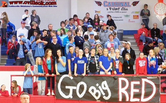 | I was perplexed Thursday when I saw many new faces I didn't recongize in the front row of the home basketball student section. I later learned they were members of the Bixby girls basketball team returning the favor for the Collinsville girls team that had cheered for them at one of thier (Bixby) games. That still didn't make sense to me until I was reminded that Collinsville Coach Mark Campbell's daughter was the coach of the Bixby girls. Apparently the two teams had also scrimmaged earlier and formed a "family" bond. The Collinsville girls had gone to cheer on the Bixby girls at a recent Owasso-Bixby game. -- Ted | ||||