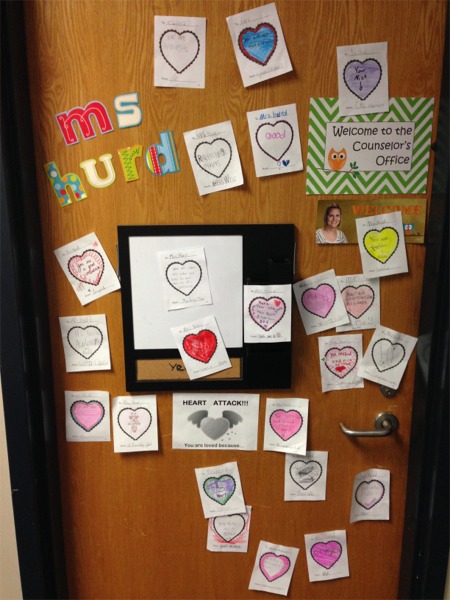 more pictures for the school website on the counseling page. There are 3 pictures of students with purple Honesty awards. These are Character awards for the month of January. There is also a picture with the completed Buddy Bench, and a picture of my door from this week (Valentine's "Heart Attack") done by one of the 4th grade classes. Also, I have attached the newsletter from January and February. Thanks, Jenni Hurd (2/11/2014) |