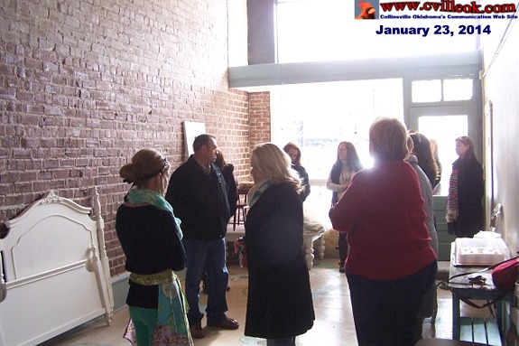 | Several folks from the ribbon cutting ceremony (Chamber and Downtown Inc. members) also took a quick look at the unfinished "Simply Parties" location at 1112 W. Main (between OK Barber & the Newspaper Museum In Collinsville). | |||