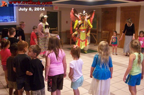 | The young kids got to participate at the Collinsville Library Tuesday July 8, 2014 when Mike and Lisa Pahsetopah demonstrated American Indian Dances and Storytelling. |