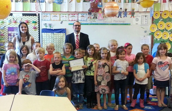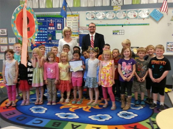 | Blake with his class ... Mrs Mahan is his teacher. | |||