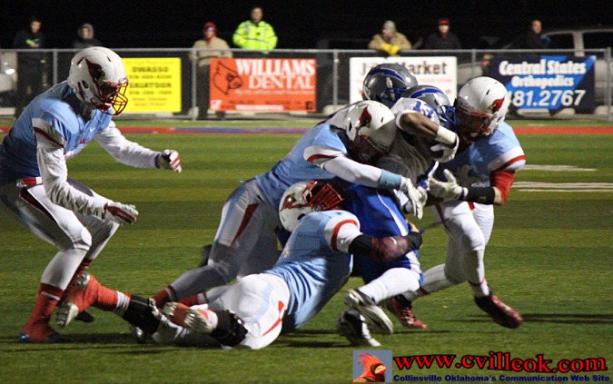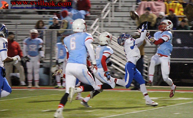 This Tyler Forrest (#81) 4th quarter interception (with Chandler Cole #6 just missing) helped seal the deal as Collinsville's secondary came up with 4 interceptions on the evening. The play ended up at the Card's 10 yard line with 5 minutes left in the game and the score 27-6. | ||||||||||||||||||||||||||||||||||||||||||||||||||||||||||||||||||||||||||||||||||||