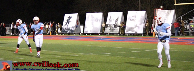 Collinsville's wide receivers lined up for the final first half plays with the band preparing for their final "Rememberance" salute to our nation's veterans. | ||||||||||||||||||||||||||||||||||||||||||||||||||||||||||||||||||||||||||||||||||||