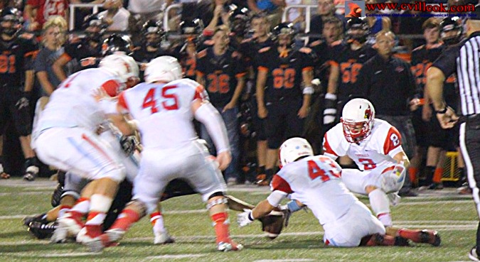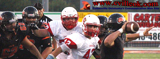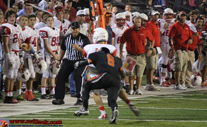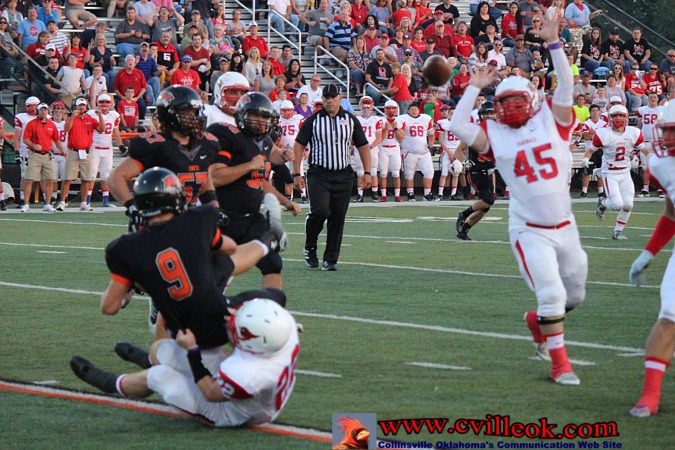 | Josh Arnold (#43) recovered a Coweta fumble at the Collinsville 40 yard line with 2:50 left in the first half setting up the first Cardinal scoring drive. | ||||||||||||||