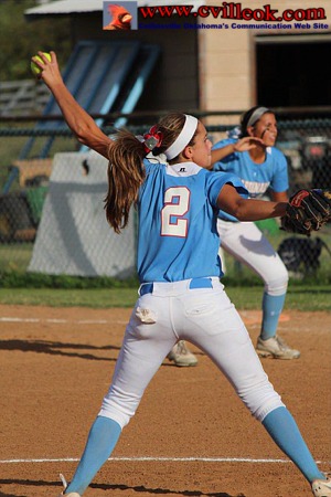 | Loren Falling (#16) was pitching and Ashlyn Ivey (#10) was catching to start the JV game that followed the varsity game and senior activities. | ||||||||||