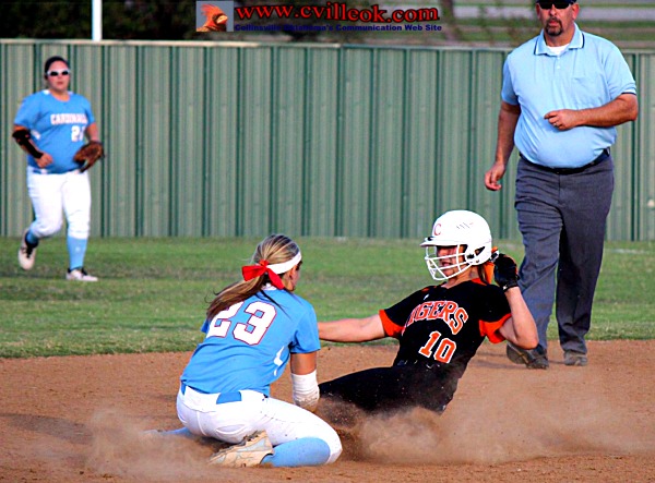 | Maybe the umpire's view was partially blocked by an arm or a leg? ... but his safe call despite Makayla Bowman's (#23) tag was not the call Collinsville fans and players expected in the 4th inning. | ||||