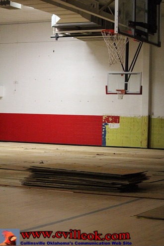 | Six retractable basketball back boards are already installed at the Upper Elementary (the two main game nets and 4 practice goals) that can be dropped down from the ceiling on the sides of the court. | ||||||