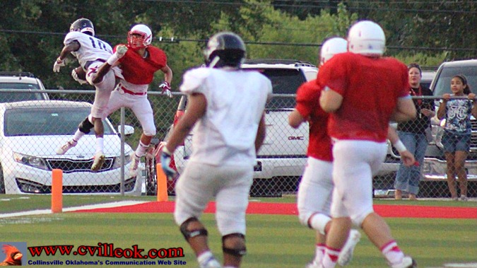 | Sorry, I can't ID the Collinsville receiver who caught the TD pass from Seth Boomer shown in the top photo on this page. -- 8/29/2015 Update: I'm told it was Hayden West with the catch -- Ted | |||||||||