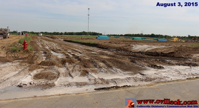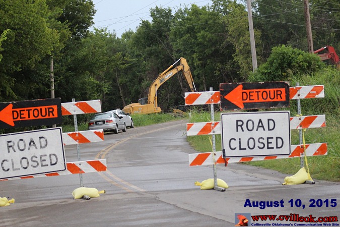 | This was the view (facing east) August 10th just after crossing the bridge behind Holman Seed Farm on my way to the Collinsville Elementary schools on 129th East Ave. The stretch of road that connect to 129th from 2nd and Main was being obstructed with on-going construction on a new sewer system east of 129th. The project extends as far south as 136th St. North (below) with many new houses likely in the not to distant future. -- Ted |