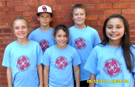 | The Collinsville Public Schools Indian Ed. Program entered several teams to compete in the Cherokee Language Bowl. A team out of Herald Elementary placed second. Teachers of the language program are Tonya Vaughn and Nancy Thomas. The students will receive $40 Visa gift cards at the annual spring awards ceremony. Collinsville Red Team Members picture l-r are Savannah Hutchens, Wyatt Nichols, Julie Ann Nichol, Buddie Nichol, and Allie Brackett. Congratulations to all the students that participated and Collinsville Red for recieving second place. |