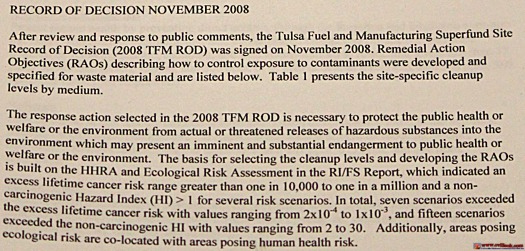 But it contains a lot more information on the "Tulsa Fuel & Manufacturing" Superfund site just 1.3 miles south of downtown Collinsville. |