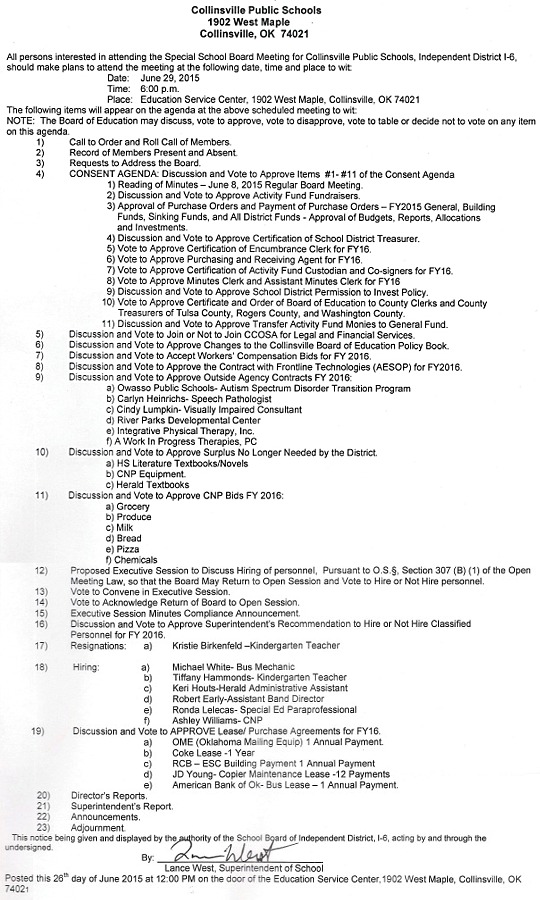 17) Accepted resignation -- 1 year teacher returning to Owasso (Kristie