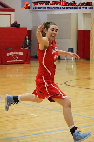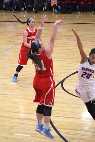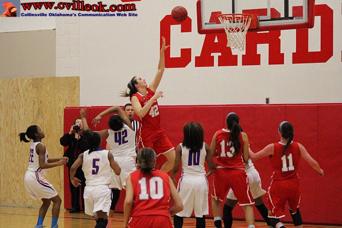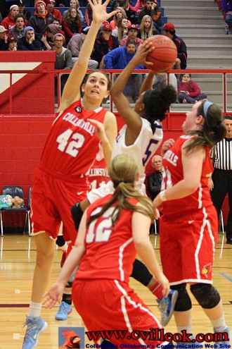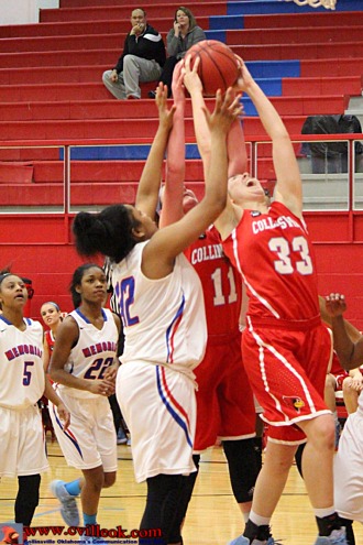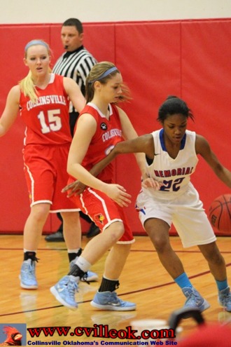 Sophomore center Mallory Vaughn had Memorial covered high and low here Monday as the Collinsville Lady Cards dominated the game to advance to Thursday's Area game at Tulsa Webster (6:30 March 5th).