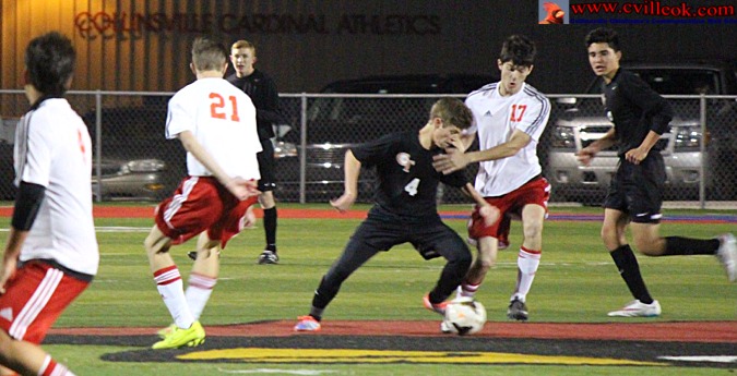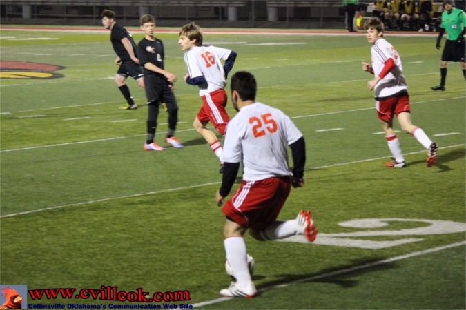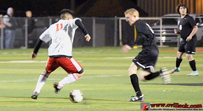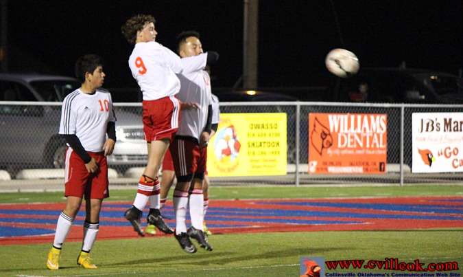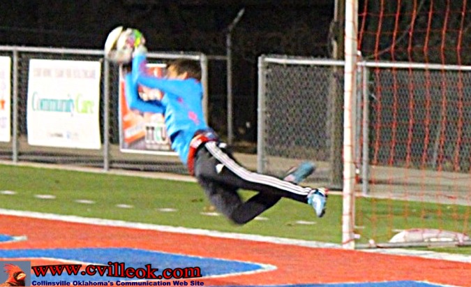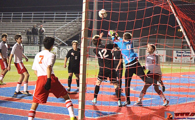| Rylan Dilling (#1) headed in Collinsville's only goal Tuesday night at the 7:20 mark in the second half to tie the score at 1-1. After a scoreless first half, Coweta had gone up 0-1 at 34:32 in the second. Coweta scored the winning goal with 4:12 left in the game. | |||||||