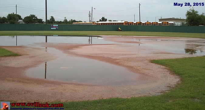 Home plate and the majority of the infield were underwater at the north softball field after Thursday morning's downpour. |