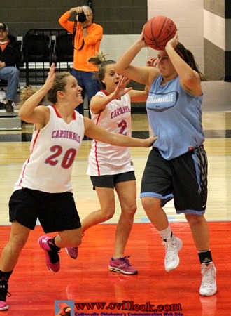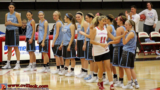 | I'm not sure what the "actual" score was in the boys game which included a 30 point play and a 14 point play for the alumni by some creative scorekeeping ...but this was the final shot (in overtime) by Logan Willt that insured the varsity win at 105-100. The girls game ended 58-27 in favor of the varsity. | ||||