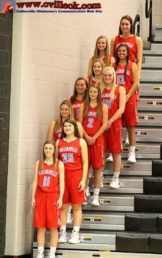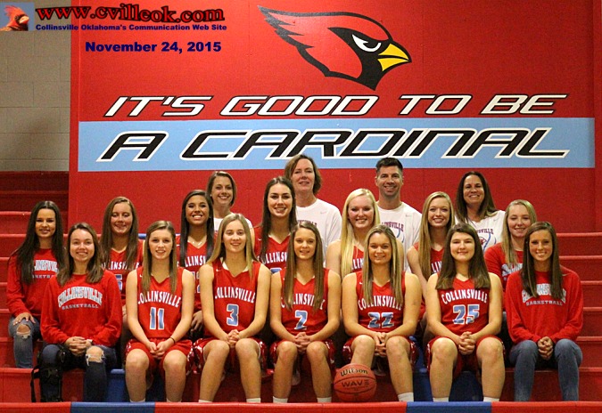 | 2015-2016 CHS Basketball Lady Cardinals -- (L-R) Front Row: Mackenzie Scott, Abby Stacy (11), Madison O'Dell (3), Bryn Willt (2), Makalya Bowman (22), Kylie Alberty (25), and Gail Young. Middle Row: Alayana Calloway, Darci Chester (5), Brittany Kickapoo (13), Mallory Vaughn (31), Rylee DeLozier (15), Ellen Thomas (33), and Ashlyn Friend. Back Row Coaches: Katie Winders, Susie Vaughn, Chad Goodwin, and Rhonda Rogers. | |||||||||||||||||