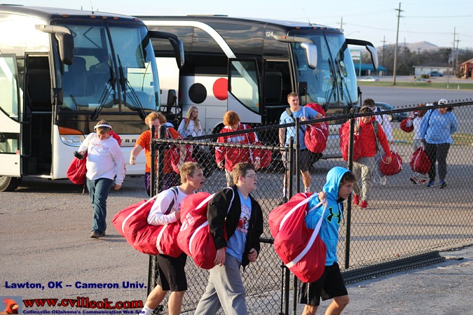 | The Collinsville team arrived at the Cameron University stadium in Lawton with daylight time to spare to get taped and prepped to play Lawton McArthur on their home field. Additional busses with cheerleaders, band and students arrived later. | ||||||||