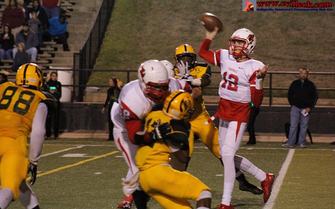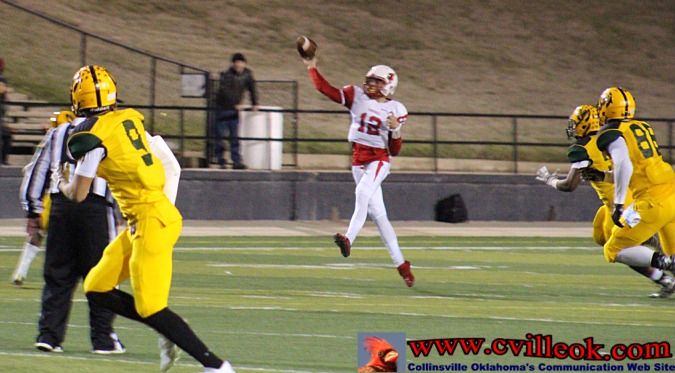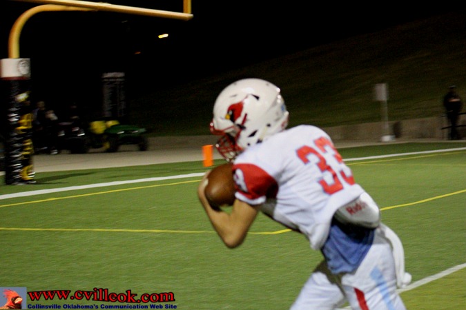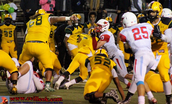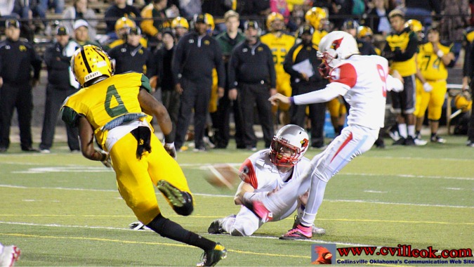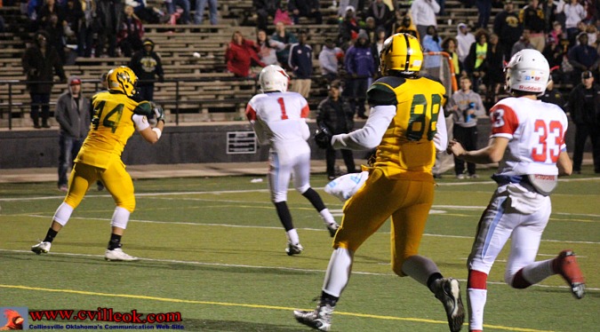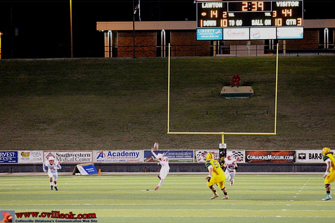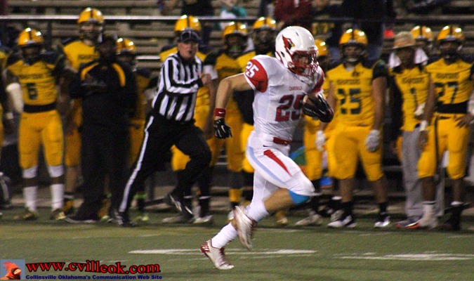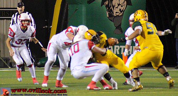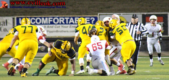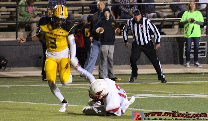 | Tyler Forrest (#1) stepped in front of a Lawton Mac pass near the Collinsville 1 yard line preventing a potential score and returned the interception out to the Lawton Mac 37 with 10:48 left in the 4th quarter. | ||||||||