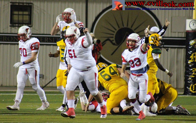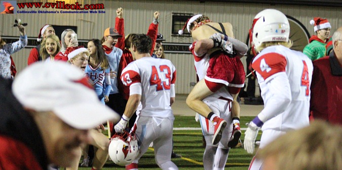 | The Collinsville players and fans celebrated the impressive win as the Cardinals ended the season of the previously #1 ranked Lawton Mac (defending state champ) team that had ended the Cardinals playoff run last year at Sallee Field. | ||||||||