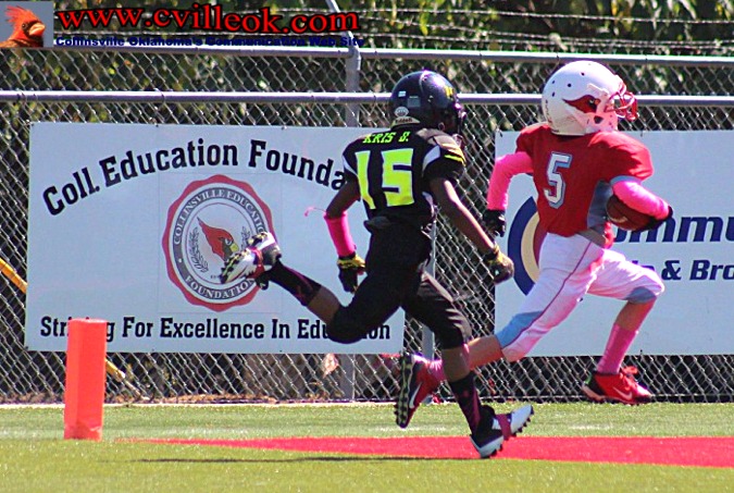 | Casey Marshall (#5) covered yards with just 15.4 seconds left in the 1st quarter to score Collinsville's first touchdown. | ||||||||