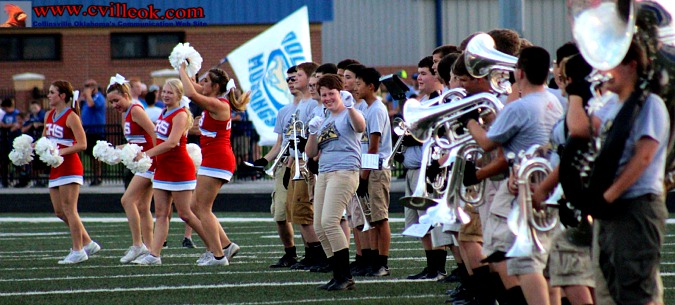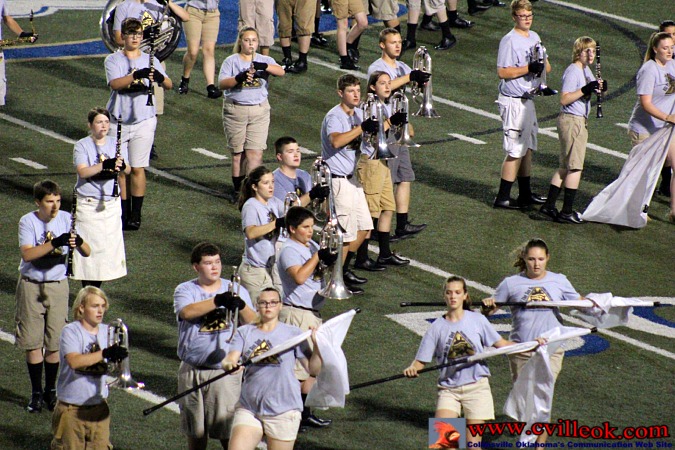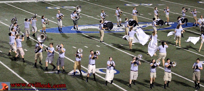 | The Collinsville Crimson Cadet Band performed their 2015 (RA, sun god) marching show at halftime. | ||||