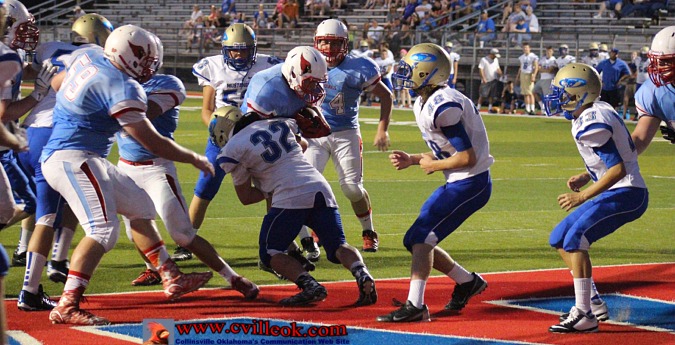 | Matthew Blissit (#38) scored on a 15 yard Sinni pass with 4:35 left in the 3rd quarter for a 27-6 score. The Cardinal drive started in Oologah territory after a Rocky O'Rourke interception. Logan Sieminskie has scored earlier on a 7 yard pass at 7:32 in the 3rd quarter. | |||||