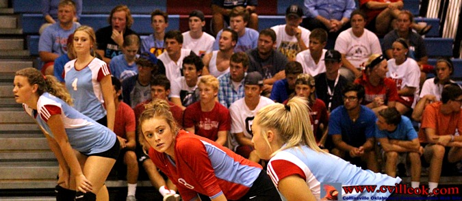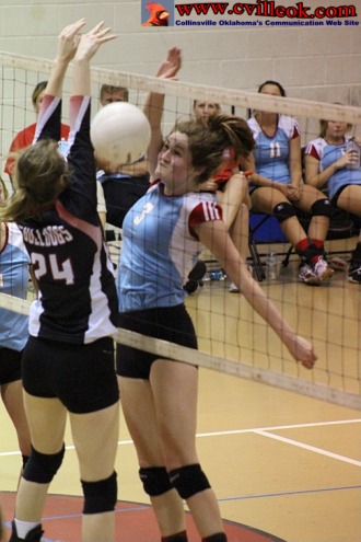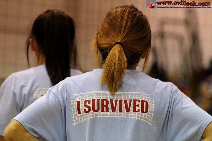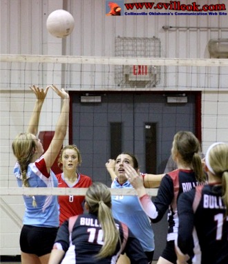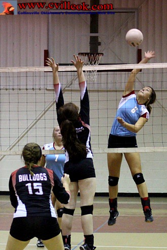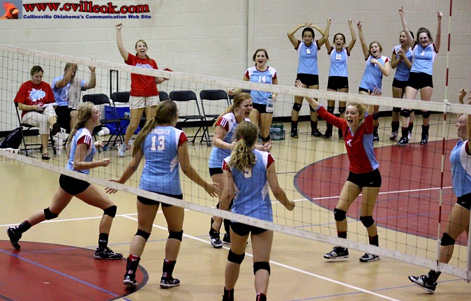 | After a long hot summer of practice in the middle school gym (which they "survived"), the CHS Volleyball team had been able to utilize the brand new (air conditioned) upper elementary gym for their home games so far this season with the high school gym unavailable. This Skiatook match was re-located to the middle school gym for the anticipated larger crowd. The players and fans were pleasantly surprised when they arrived to cool air in the normally sweltering middle school gym as temporary air conditioning had been put in place for this game only. Collinsville is hoping to host a volleyball regional and this would be a potential back up mode if the high school gym is not finished by that time (Oct. 6th). | ||||||