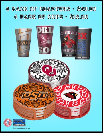 cups and coasters they will be selling over the next 2 weeks. All proceeds
