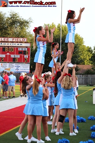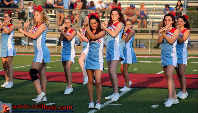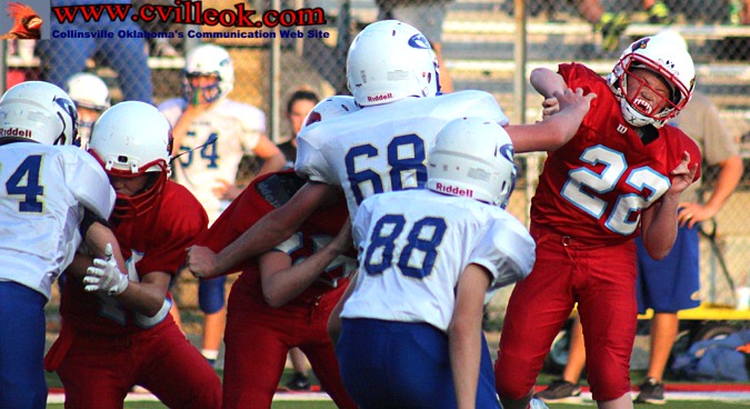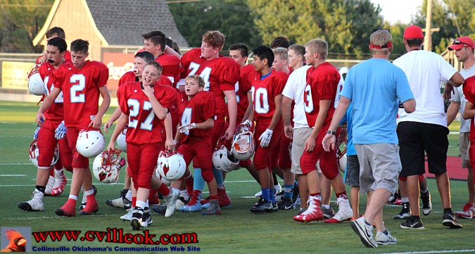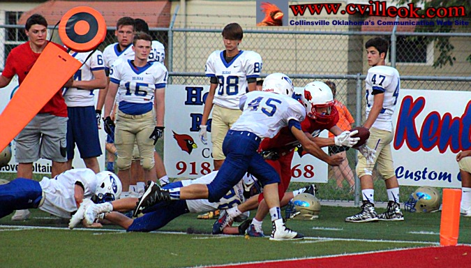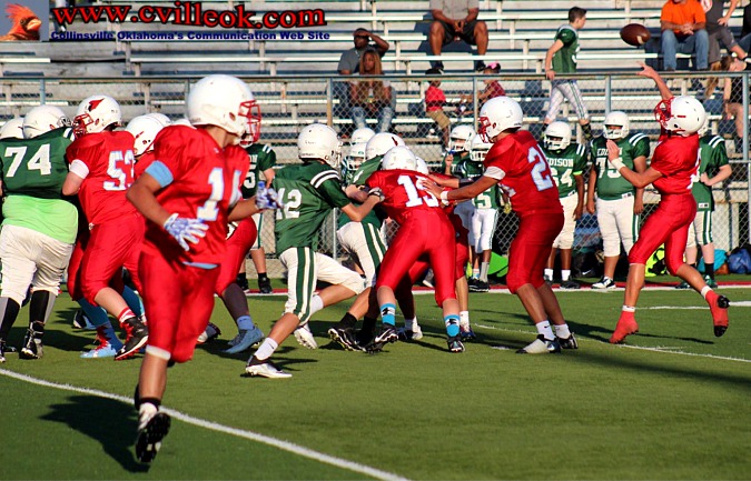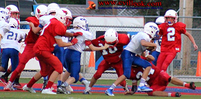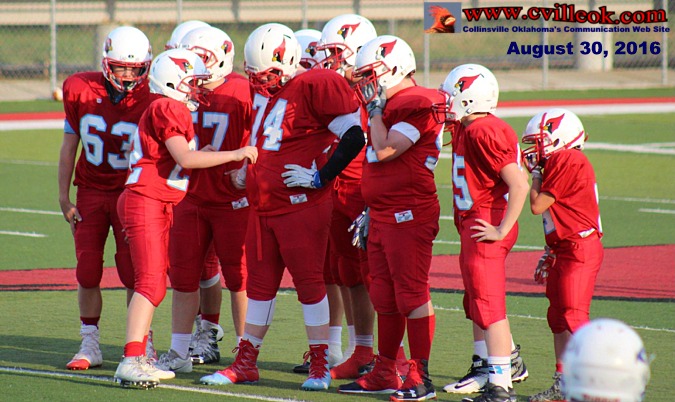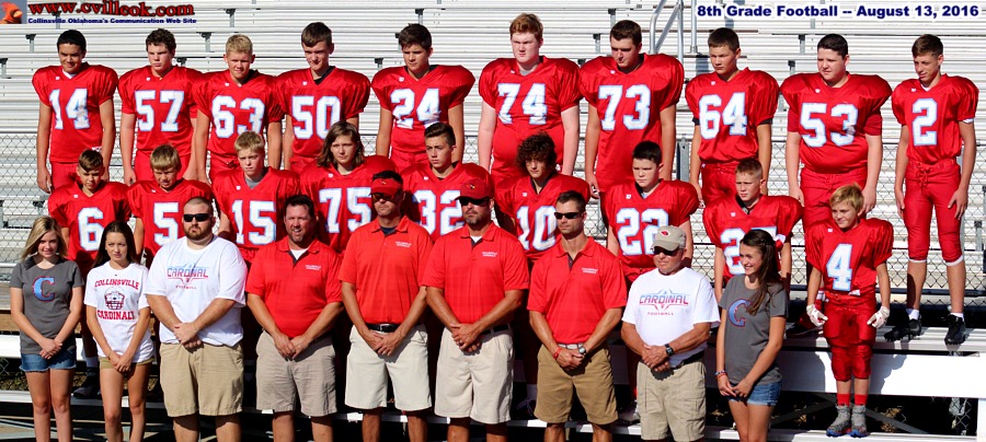 (Tweet: Some fierce looking Collinsville 8th graders beat Oologah 22-8 Aug. 30th. The Card freshman were ahead 21-0 at half) |