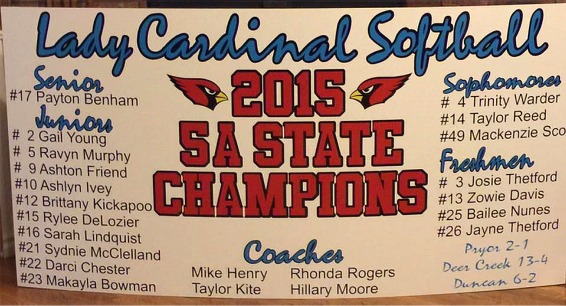 | Missy DeLozier posted this preview of the new sign headed to the CHS softball field soon as the Lady Cardinals prepare to defend their 5A State Title in 2016. Missy and Taylor Kite created the sign with an assist from Keith DeLozier. -- 8/2/2016 |