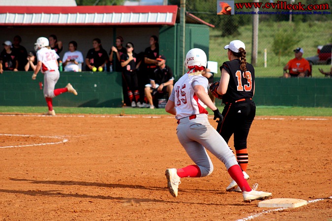 2-RBI single by Sydnie McCelland scored Megan Scyrkels and Rylee DeLozier.