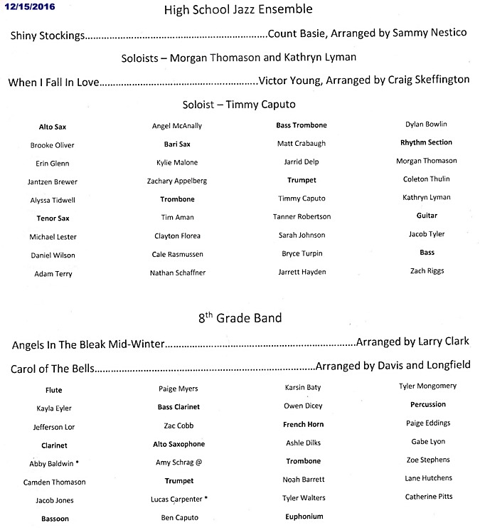 our Jazz Band, will perform Thursday, December 15th,