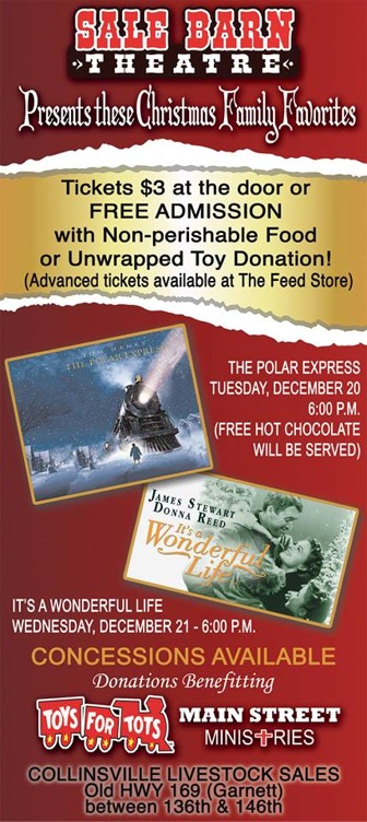 Dec. 21Christmas Break - No School3:30-4:30 pm PAWS for Reading at Library 6pm It's A Wonderful Life Movie at Sale Barn |