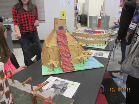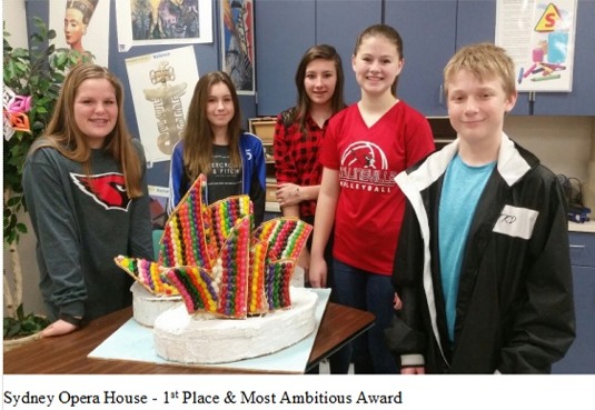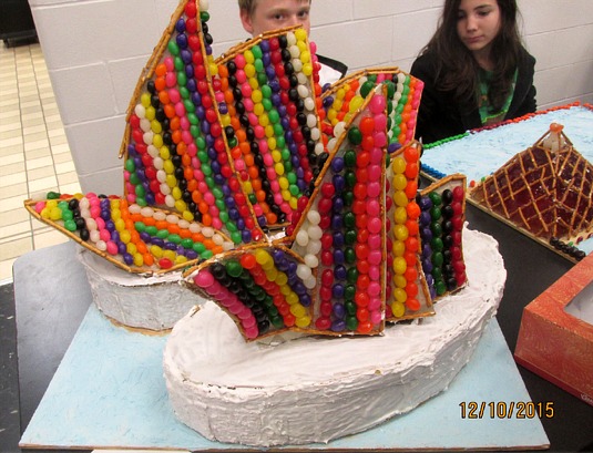 December 2015 Report -- Over the weekend, Collinsville Middle Schools 7th grade SAS students (a hands on STEM class with a goal to help kids become creative problem solvers) competed in the Tulsa STEM Alliance Famous Structures Gingerbread competition. This competition included schools in and around the Tulsa area. We took 6 entries for the competition. Two of our SAS groups won 1st Place Awards (tied) as well as the Most Ambitious award in the Middle school division. The winning structures include the Sydney Opera House, (1st place and Most Ambitious) and the Dancing House (1st place). These as well as the other gingerbread structures are displayed at the Collinsville Public Library. We are proud of all our kiddos and the hard work they put forth. Below are photos of the winning entries. - Jackie Hass & Cheryl Bertelli |