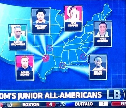 Just saw this!!! Congrats Levi Draper!!! Last night on CBS Sports, Tom Lemming Junior All American Team & Butkus Award Nominees -- Rustin Draper 1/16/2016 (Facebook Post) |
