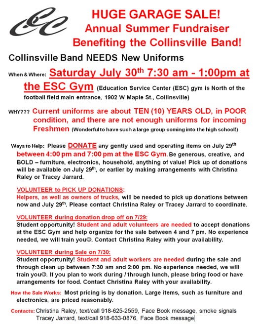 at the band room located behind Collinsville Middle School. In addition