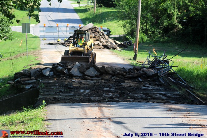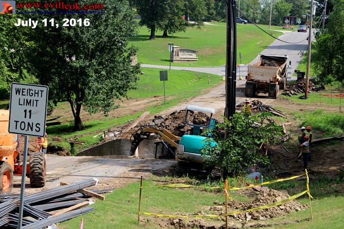 | Work to replace the old 19th Street bridge (by the City Park) began July 5th and the old span was mostly gone when I took this photo Monday afternoon (July 11th). When this bridge is completed, work will move to 12th Street (over the same creek). -- (Previous Coverage) |