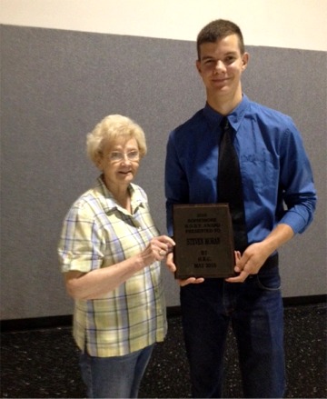 | HRC Member, Carolyn Brinkley is seen here giving the Hugh O'Brian Youth Leadership award to HOBY recipient: Steven Moran |