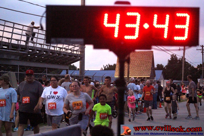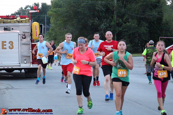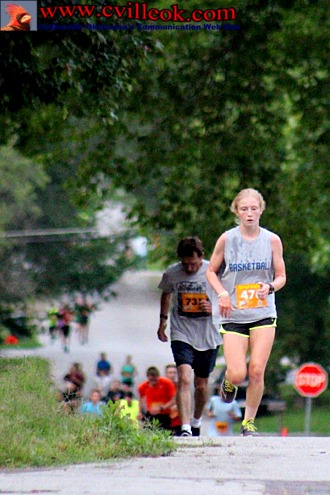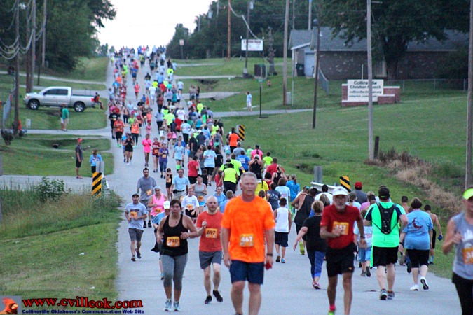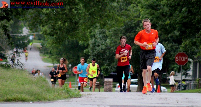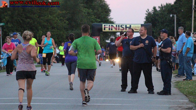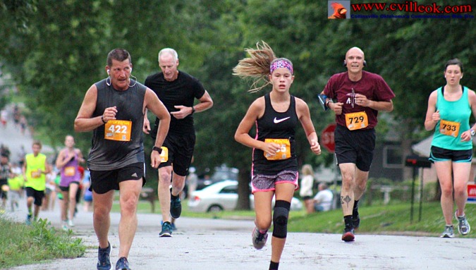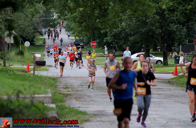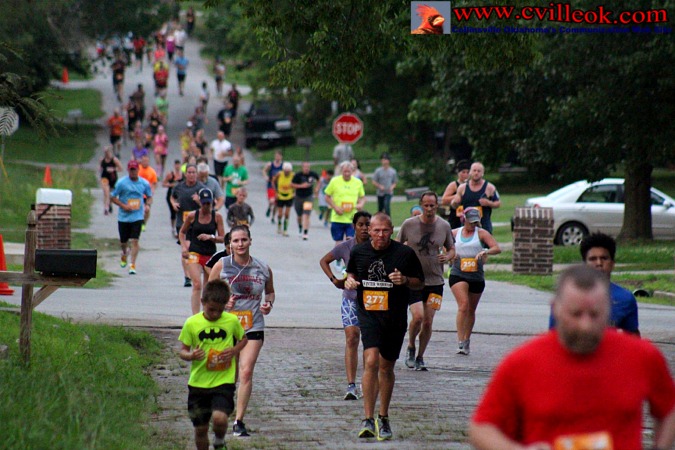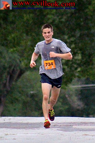 portion of the race leading back to the 19th Street finish. Caleb Turnbull (#734 from Coweta) finished firstwith a time of 17:57. Lane Nichold (#401 from Claremore) was the fastest female with a time of 20:27. |
