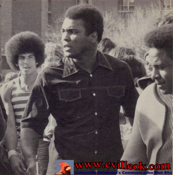 | I was a student at the University of Oklahoma (living in Walker Tower) when world famous boxer Muhammad Ali made an unannounced visit to the OU campus and spoke briefly just outside the Walker Tower dormitory in February 1972. The word spread quickly that he was there (even without cell phones or internet) and a big crowd listened to his words. I was too busy trying to get photos and don't recall what he said. I recall that he had been in OKC for some event but don't know why he came to OU. I have been fortunate to get live photos of President Richard Nixon (at the Port of Catoosa dedication) and Texas Governor George Bush (Garland, TX Labor Day parade) but the brash and controversial Muhammad Ali, in his day, was even more well known world wide. -- Ted Wright -- June 4, 2016 | |||