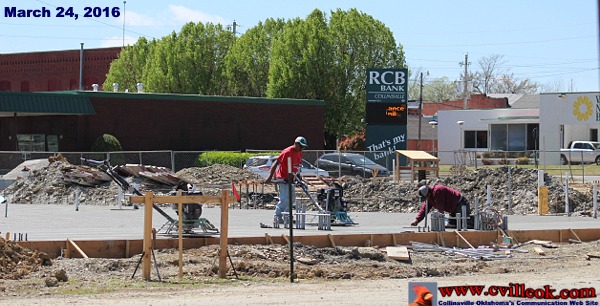 | The slab was poured last week for the new Collinsville Church of Christ building (on Broadway between 10th and 11th). The church members have been meeting at the Middle School on Sundays since the former buildings on that block were removed to make room for this future building. |