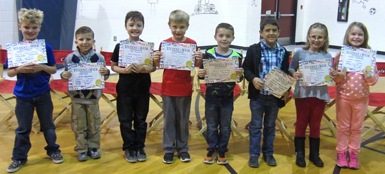 Students - First Grade (11-18-16) (l-r) Axton Oder, Austin Dunn, Jude McMath, Trevor Lawhead, Braxton Fritts, Draigon Chasteen, Sophia Strickland, and Gracie Blankenship |