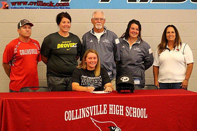 | Collinsville senior catcher Darci Chester signed to play softball with the University of Science and Arts of Oklahoma (USAO) at Chickasha. She was joined at the signing by her parents (seated) David and Darenda Chester. Standing (L-R): Trent Flanagan (cousin), David Chester Jr. (brother), Ashley Flanagan (cousin) and Ravyn Murphy (cousin). | |||||||||