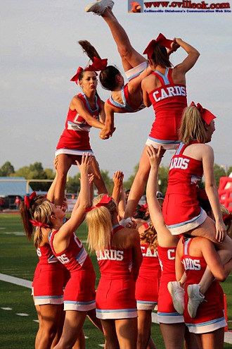 | The CHS Cheerleaders performed at half time with the routine they will take to 5A Cheer Regionals (at Bixby Sept. 17th) | ||||||||||||||||||||||||||||