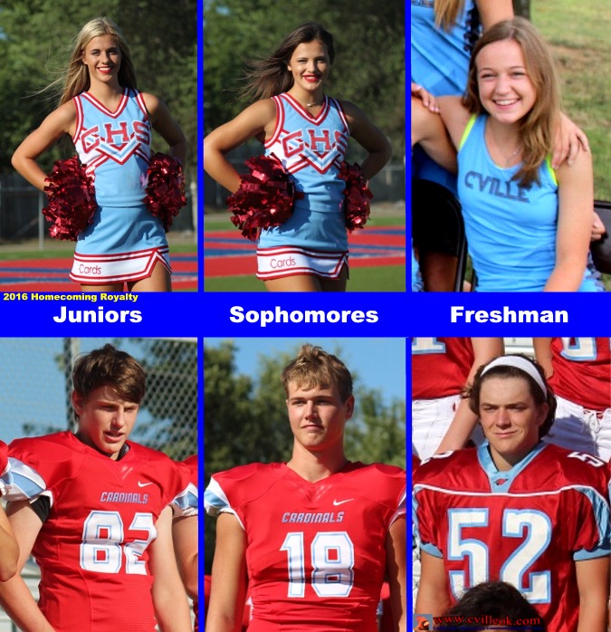 Mallory Vaughn, and Gail Young. Senior King Candidates (L-R): Seth Boomer, Levi Draper, Brett Erickson, Jake Harrison, Marcus Reeder, and Jackson Wilson. |