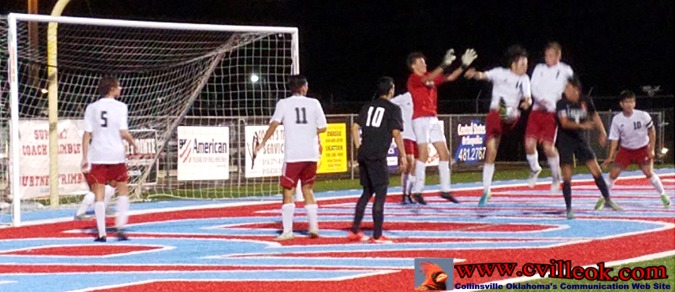 JV Boys nearly scored on this shot which the Claremore goalie just deflected.